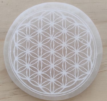 Cette plaque en sélénite assure la purification de vos pierres et bracelets puisque la sélénite est une pierre purifiante. La fleur de vie gravée apporte les ondes de forme qui complète la purification et assure un rechargement progressif des pierres. Il faut compter 8 semaines pour un rechargement complet.