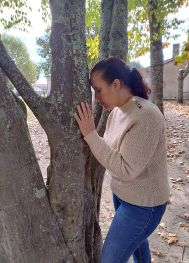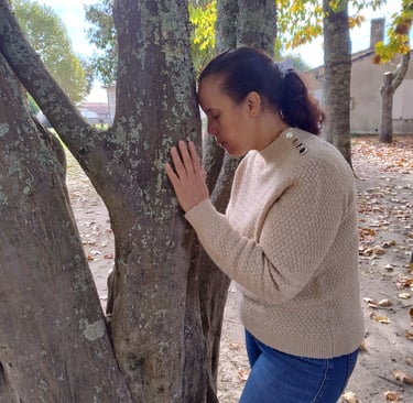 Depuis ce jour, pour moi, les pierres naturelles et les arbres se complètent dans le processus de guérison émotionnelle et de développement personnel. Et j'ai développé ces échanges pour pouvoir apprendre aux personnes à faire de même et percevoir des réponses de l'arbre lorsque la personne est contre lui face à une problématique définie par la personne elle-même. Cet échange entre vos énergie, l'arbre et moi répond uniquement à cette problématique, avec l'accord de la personne, pour l'aider à avancer et libérer ses blocages.