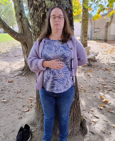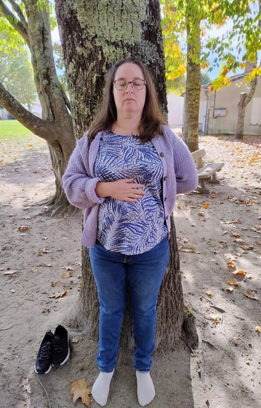 J'ai choisi le premier arbre sur ma route. Je lui ai demandé son aide pour m'ancrer (oui, j'ai parlé à cet arbre, aussi insensé je le pensais à ce moment-là). Je me suis placée dos contre lui, une main sur mon plexus solaire, l'autre dans mon dos, face contre le tronc. J'ai fermé les yeux et j'ai attendu. Je n'ai pas attendu longtemps cependant pour ressentir ce qui se passait en moi et l'échange énergétique que j'ai eu avec cet arbre.